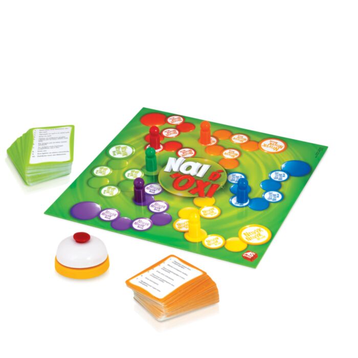 Το παιχνίδι που δε μπορείς να πεις ούτε ΝΑΙ ούτε ΟΧΙ! Μπορείς να απαντήσεις σε μία σειρά απλών ερωτήσεων χωρίς να πεις αυτές τις δύο λέξεις; Χρησιμοποιείστε τη φαντασία σας για να νικήσετε και γελάστε μέχρι δακρύων, με περισσότερες από 900 ερωτήσεις, ειδικά σχεδιασμένες για να παραπλανήσετε τον αντίπαλο! Ο πρώτος παίκτης που θα φτάσει στο κεντρικό πεδίο του ταμπλό κερδίζει!