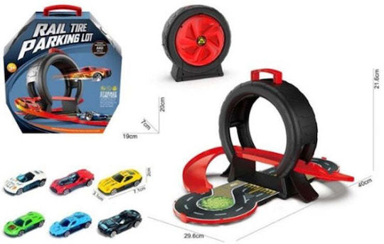 Πίστα εκτόξευσης, που κλείνει σε πρακτικό βαλιτσάκι-ελαστικό αυτοκινήτου.