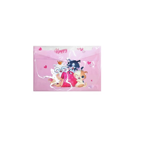 Διάφανος Φάκελος A4 με Κουμπί & Σχέδιο Ζωάκια – “Happy”
