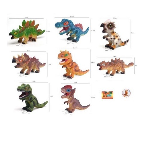 Δεινόσαυρος, που βγάζει ήχο όταν τον πιέζεις, σε 6 διαφορετικά σχέδια. Το καθένα πωλείται ξεχωριστά. Τυχαία επιλογή σχεδίου. Διαστάσεις συσκευασίας: 24x8x9cm Προσοχή! Δεν είναι κατάλληλο για παιδιά κάτω των 3 ετών, μικρά μέρη – κίνδυνος πνιγμού.