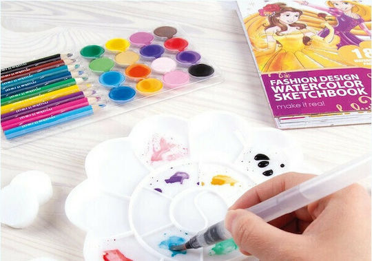 Το σετ Make it Real Disney Princess: Fashion Design Deluxe Set Watercolor (4252) προσφέρει μια μοναδική εμπειρία δημιουργίας για τους μικρούς μας καλλιτέχνες. Περιλαμβάνει όλα τα απαραίτητα εργαλεία για να σχεδιάσουν τα δικά τους ρούχα με θέμα τις Πριγκίπισσες της Disney. Ιδανικό για κινήσεις φαντασίας και ανάπτυξη δεξιοτήτων σχεδίασης.